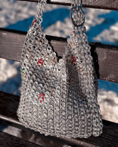The Soda Can Purse is an eco-friendly handbag made from upcycled aluminum soda can tabs. It features a zipped top for secure closure and is fully lined. The vibrant colors add a playful touch to the purse. It’s versatile and can be used for casual outings, parties, or festivals. The purse’s structure is sturdy yet lightweight, with a synthetic fabric liner for comfort. Made from recycled aluminum tabs, it aligns with punk crafts principles. The unique handmade quality of each piece, crafted by artisans in Peru or Brazil, makes it a conversation starter and a statement of personal style.