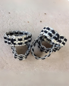 This bangle is a unique piece of jewelry made from upcycled soda pop tabs, transforming everyday items into stylish accessories. It features a series of interconnected pop tabs, creating a distinctive look. The bangle is designed with a flexible, lightweight, and durable aluminum soda pop tab structure, aligning with the punk crafts movement. The bangle’s unique features, such as the variability in the tabs used, make it a sustainable choice for fashion enthusiasts. It can be worn as a fashion statement, promoting sustainability and upcycling.