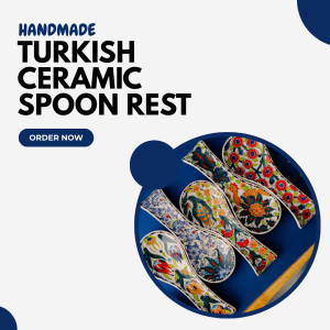 The Handmade Turkish Ceramic Spoon Rest is a unique kitchen accessory that combines functionality with traditional artistry. Made by hand, it serves as a practical utensil holder, keeping cooking tools off the countertop. The intricate hand-painted designs, resembling traditional Turkish motifs, add a touch of authenticity. The spoon rest is lead-free, food-safe, and microwave and dishwasher safe, blending traditional aesthetics with modern usability. It elevates the kitchen environment and reflects Turkish culture.