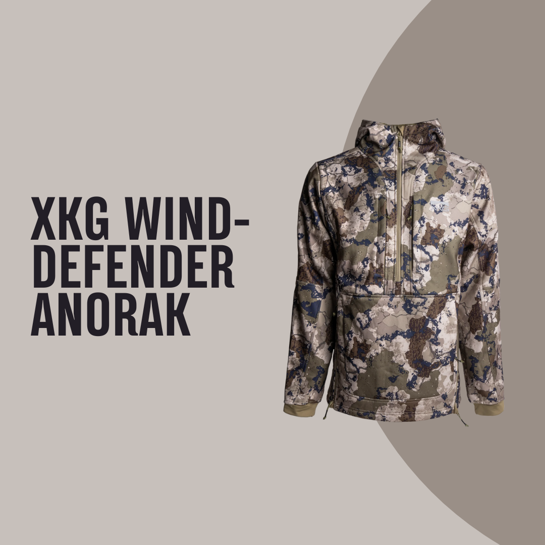 The XKG Wind-Defender Anorak is a high-performance outer layer designed for outdoor enthusiasts and hunters. It features a soft shell hybrid construction, combining a woven stretch polyester face fabric with a pile fleece backing. This design ensures wind-resistant and moisture-wicking properties, making it suitable for various weather conditions. The stretchy polyester and fleece backing provide thermal insulation while maintaining breathability, preventing overheating during activities like hunting or hiking. The anorak is ideal for cool to cold weather conditions, making it ideal for hunting trips during fall and winter months. Its camouflage design, wind resistance, thermal insulation, and environmental protection contribute to a more sustainable hunting approach.