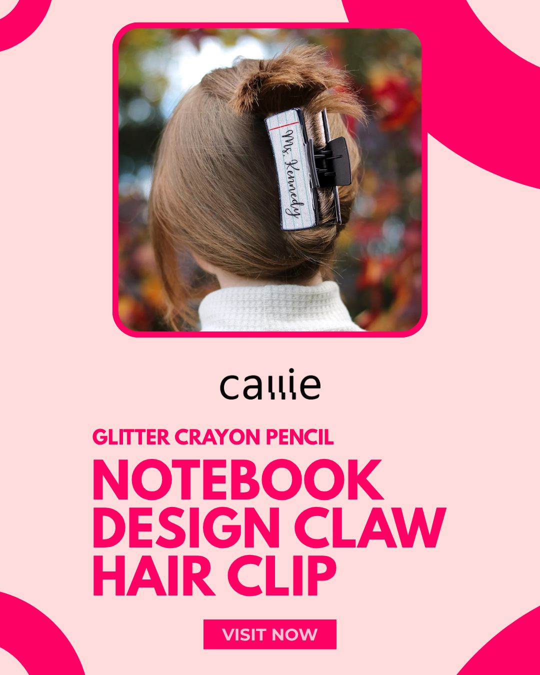 The Personalized Glitter Crayon Notebook Pencil Design Hair Clip is a unique and fun accessory designed for teachers. It features a whimsical design incorporating elements like crayons and pencils, making it a perfect gift for educational professionals. The clip is crafted in a claw style, featuring nine different styles with childlike creativity. Made from durable acrylic, it is adorned with glitter for a festive appearance. The clip’s playful design, complemented by its customizable name, makes it a unique and thoughtful gift. It’s an ideal choice for special occasions like birthdays or Teacher’s Day, showcasing the playful spirit of education and creativity.