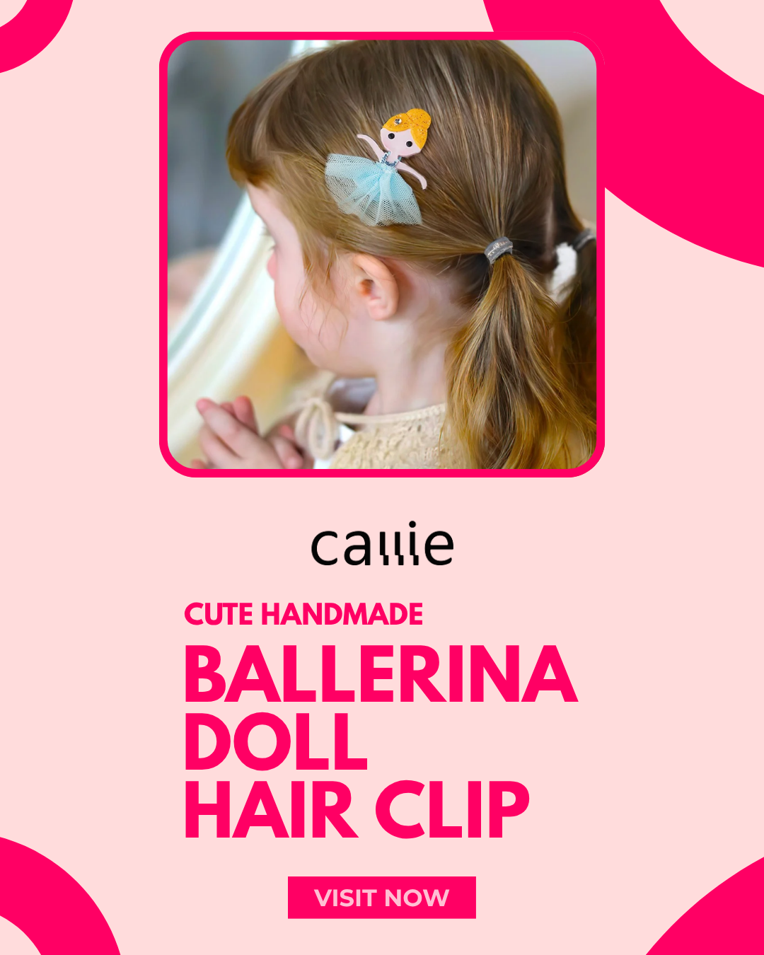 The Personalized Cute Handmade Ballerina Doll Alligator Clip is a charming hair accessory designed for young ballet enthusiasts. It features a delicate ballerina doll dressed in a tutu, embodying the grace and elegance of dance. The clip is made from high-quality materials, including soft fabric and a sturdy metal base, ensuring durability and a lightweight feel. The ballerina doll comes in various colors, and the tutu can be adorned with sparkles or patterns. The clip’s unique feature is its personalization option, allowing the child to personalize the clip with their name. The handmade aspect sets it apart from mass-produced accessories.