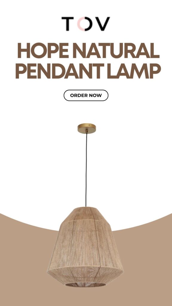 The Hope Natural Pendant Lamp is a stylish and functional lighting fixture with a boho-chic aesthetic. Its unique natural jute shade creates a warm and inviting atmosphere in various spaces, including living rooms, bedrooms, and home offices. The lamp’s pendant design hangs gracefully from the ceiling, while its textured appearance enhances its natural charm. Made from sustainable and eco-friendly natural jute, it contributes to its aesthetic appeal and aligns with environmentally conscious design principles. The lamp’s warm glow reduces eye strain during long working hours, fostering a more comfortable atmosphere. Its versatility makes it suitable for various settings, promoting a sense of tranquility and connection to nature.