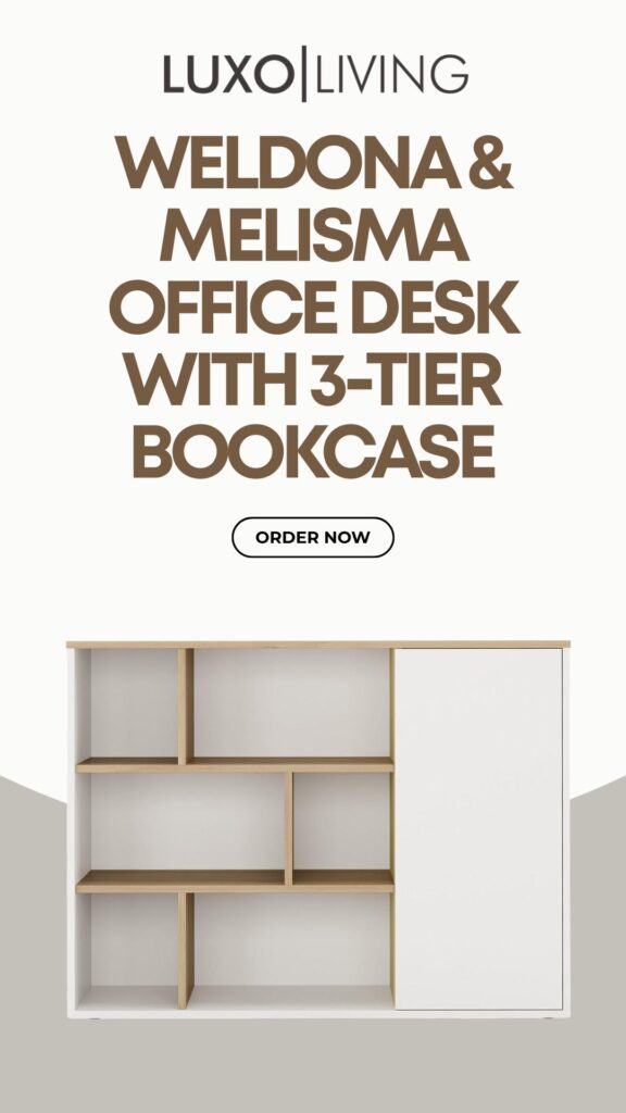 The Weldona & Melisma Office Desk with 3-Tier Bookcase is a modern, functional workspace solution for home offices. It features a spacious surface, accommodating computers, notebooks, and other office essentials. The desk is constructed from high-quality oak, known for its durability and attractive grain patterns. The desk’s sleek, minimalist design creates a clutter-free environment. The desk and bookcase provide easy access to materials and resources, streamlining workflow. The bookcase allows for the display of books, plants, or decorative items, making the workspace feel more inviting. The desk also includes built-in storage solutions, ensuring everything is within reach, enhancing both functionality and aesthetics in the home office.
