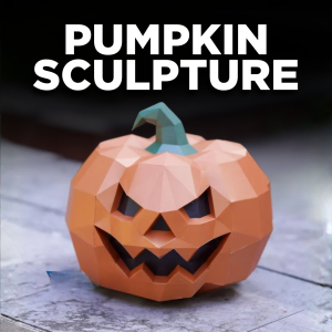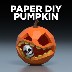 The “Pumpkin with Skull 3D Papercraft” is a DIY project that combines a pumpkin and a skull motif in a three-dimensional sculpture. The papercraft is made from paper with a weight between 180-300 g/m² for sturdiness and ease of folding. The combination of a pumpkin and skull creates a spooky and artistic look, perfect for Halloween-themed decor.. Its low-poly 3D design gives it a modern geometric look, and the combination of pumpkin and skull motifs adds to its distinctiveness.