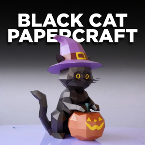The “Black Cat with Pumpkin & Witch Hat” papercraft is a Halloween-themed item featuring a charming black cat wearing a witch hat and a pumpkin, iconic Halloween symbols, offering a creative and festive way to celebrate the holiday. The product is designed for use with paper materials, such as cardstock or heavy paper, and can be printed as a digital download or printable template. The unique structure of the 3D paper model allows users to assemble it by cutting out pieces and folding or gluing them together.