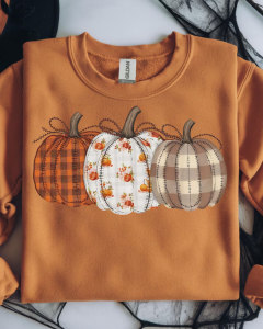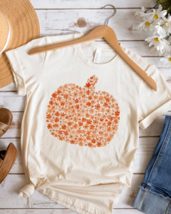 This Pumpkin Shirt for Women is a cozy fall sweater or sweatshirt, themed around autumn and Thanksgiving. It features a pumpkin design with floral elements and the word “Thankful,” evoking the spirit of gratitude. Available in multiple autumn-inspired colors, such as burnt orange, mustard yellow, deep reds, browns, and cream tones, this shirt is unique in its blend of floral and pumpkin imagery. It’s a versatile piece for casual fall outings or holiday gatherings, likely handmade or custom-crafted.