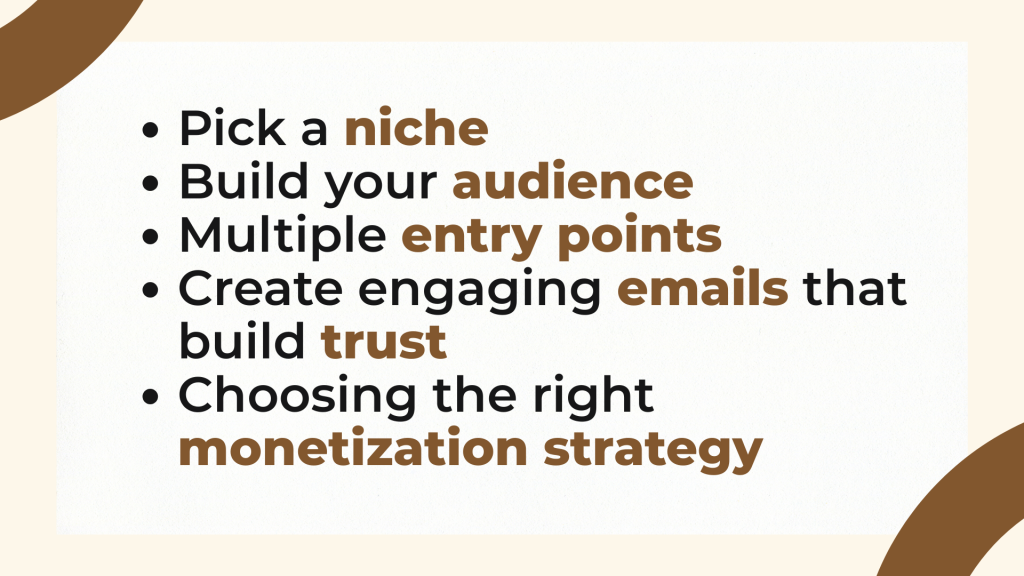 Monetization options include affiliate marketing, selling products, partnering with brands for paid promotions, offering coaching or consulting services, and creating exclusive content for paid subscribers. To choose the right path, align monetization with your audience’s needs and trust level, start with low-risk affiliate marketing, and test different offers using Google Analytics and email platform reports. Consider joining programs like Amazon Associates, or niche-specific affiliate networks to earn commissions.