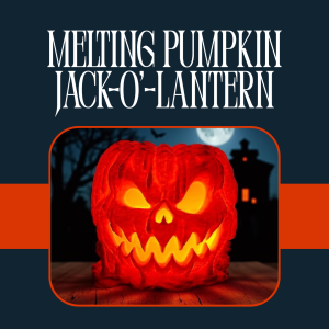 This 3D-printed melting jack-o’-lantern is a unique Halloween decoration made from biodegradable PLA plastic. It features a carved face and a flickering flameless LED tea light, creating a spooky ambiance. Designed to also function as a candy storage container, it measures approximately 3 x 3 x 3 inches and offers a practical and charming addition to Halloween décor. Its innovative melting design distinguishes it from traditional pumpkins while ensuring safety without fire hazards.
