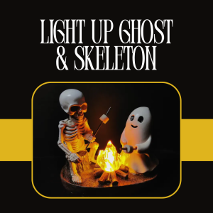The product is a light-up Halloween decoration featuring a ghost and skeleton, designed to create a spooky ambiance with LED illumination. Typically made from durable materials like resin or ceramic, this figurine showcases detailed craftsmanship and is suitable for indoor display. It embodies classic Halloween motifs, enhancing the festive atmosphere alongside other decorations. Its unique combination of glowing ghost and skeleton figures makes it eye-catching and versatile, perfect as a centerpiece or part of a larger Halloween display.