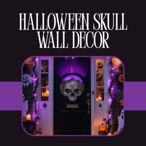 This Halloween wall decor features a textured skull design on a round black base, enhanced by purple LED backlighting that creates an eerie glow. Made from durable, high-detail resin, the skull’s weathered texture contributes to its chilling appearance, making it ideal for indoor Halloween decorations or parties. Its unique combination of design and lighting offers a distinctive atmosphere, making it a valuable addition for Halloween enthusiasts. This decor piece stands out due to its realistic look and ability to elevate typical Halloween settings.