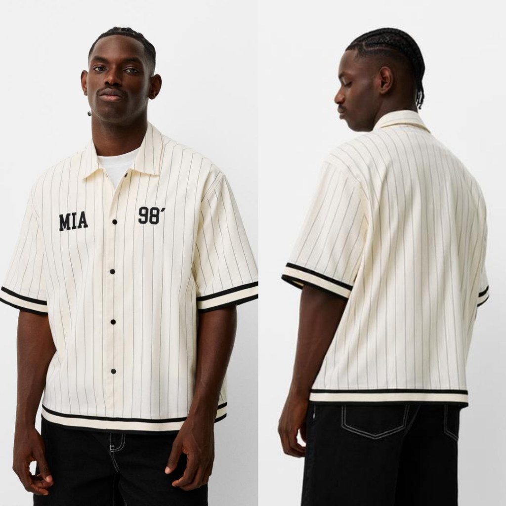 The Bershka Embroidered striped shirt with short sleeves is a stylish and versatile piece that embodies street style. Its bold aesthetic and versatile nature make it a staple for urban fashion enthusiasts who blend comfort with style. The shirt’s casual yet polished look makes it a canvas for layering and accessorizing. Its unique design allows it to be paired with various pieces, elevating the overall outfit. Styling combinations include distressed denim jeans, tailored shorts, lightweight jackets, and statement sneakers. This shirt’s versatility and creative expression within street style make it a valuable addition to any streetwear collection.