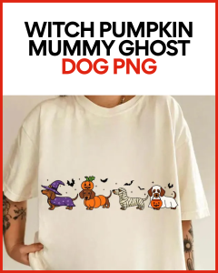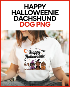 This digital Halloween-themed PNG features a dachshund dog dressed in spooky costumes like a witch, pumpkin, mummy, and ghost. It’s affordable, around $2, and can be used for personal projects, crafts, or printing. The unique combination of the dachshund dog breed with classic Halloween motifs adds a unique charm to the design. The PNG can be printed on t-shirts, hoodies, tote bags, or iron-on transfer paper, turning a simple outfit into a festive statement piece.