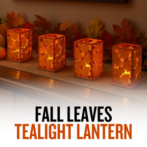 This Fall Leaves Tealight Lantern is designed to enhance autumn and Thanksgiving decor with its decorative fall leaves motifs and ability to hold tealight candles. Typically made from materials like wood or metal, it provides a warm, cozy glow ideal for creating a festive atmosphere. The lantern’s unique design incorporates cutout or layered leaf shapes that allow light to filter through, casting decorative shadows. Its small, portable structure makes it versatile for tables, shelves, or centerpieces, adding rustic charm and seasonal aesthetic to holiday decorations.
