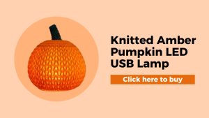 The Knitted Pumpkin Lamp USB Amber LED Light is a handmade decorative lamp featuring a unique knitted pumpkin cover that houses a USB-powered amber LED light. It produces a warm glow ideal for creating autumn ambiance and is perfect for Thanksgiving decor, aligning with seasonal themes. The lamp’s hand-knitted design, soft lighting, and USB convenience make it a cozy and distinctive accent piece that enhances festive celebrations.
